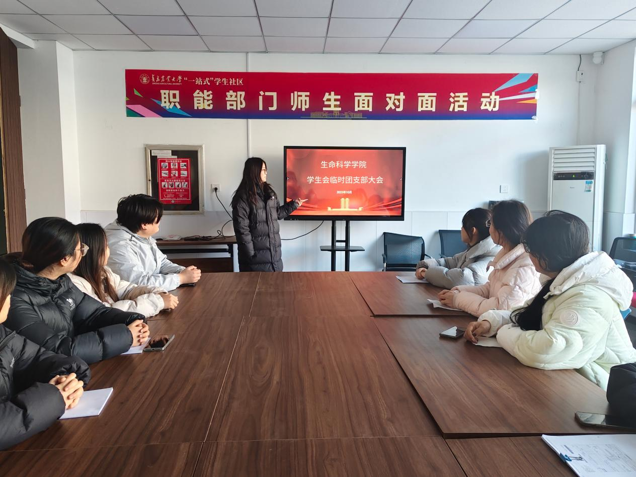 为深入学习贯彻习近平总书记在纪念中国人民抗日战争暨世界反法西斯战争胜利80周年大会上的重要讲话精神,引导广大学生骨干铭记历史、勇担使命,10月28日,生命科学学院学生会临时团支部在东苑十四号楼“一站式”学生社区组织召开专题学习会。学院学生会、学生事务中心各部门负责人参加会议,会议由主席团成员任照芳主持。