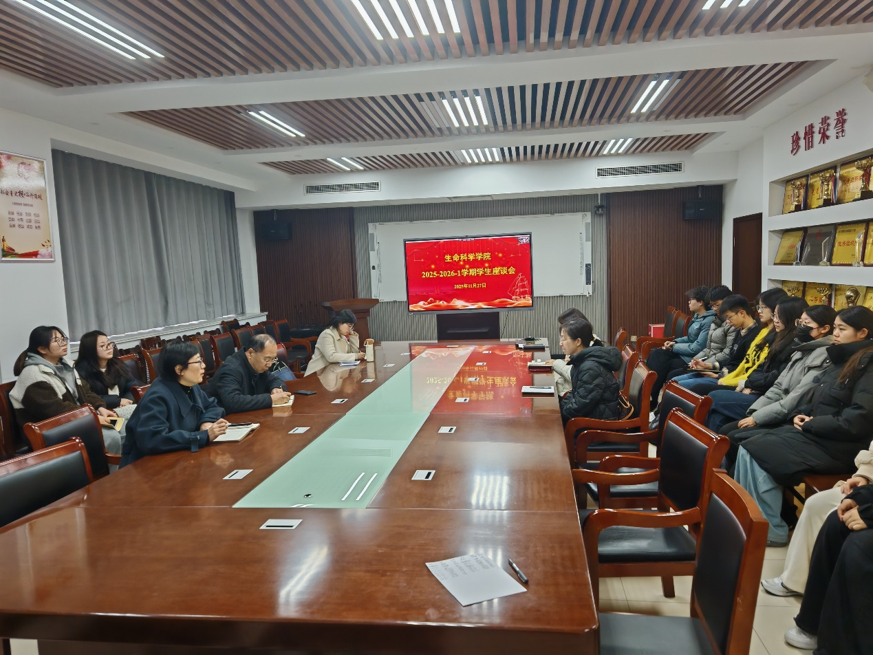 为进一步加强教学管理,提升教学质量,深入了解学院本科生及研究生的学习与生活需求,2025年11月27日,生命科学学院在学院会议室C305召开了本学期期中教学检查学生座谈会。教学院长、研究生及本科生校督导、各系主任及教师代表、研究生秘书、教学秘书,以及2023级、2024级、2025级各本科、研究生班级的学习委员和班长参加了本次会议。