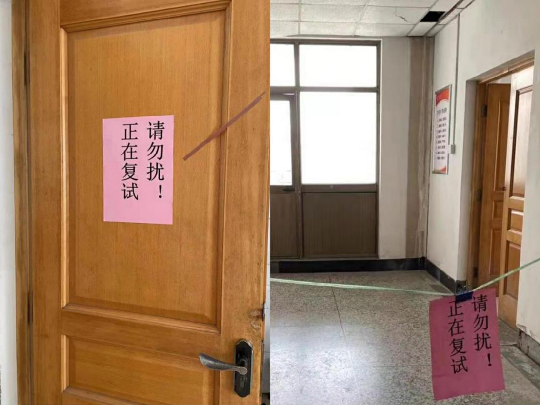 复试场所经过重新改造,环境整洁美观,配有充电接口、接线板、手机支架等,学院专门购置了落地三脚架等线上复试设备,复试场所周围贴上了提示标语,全力为线上复试学生解决硬件设备和复试环境问题。有需求的学生提前向学院提出申请,做好预约登记。