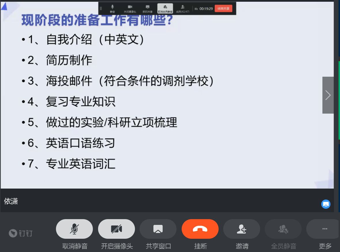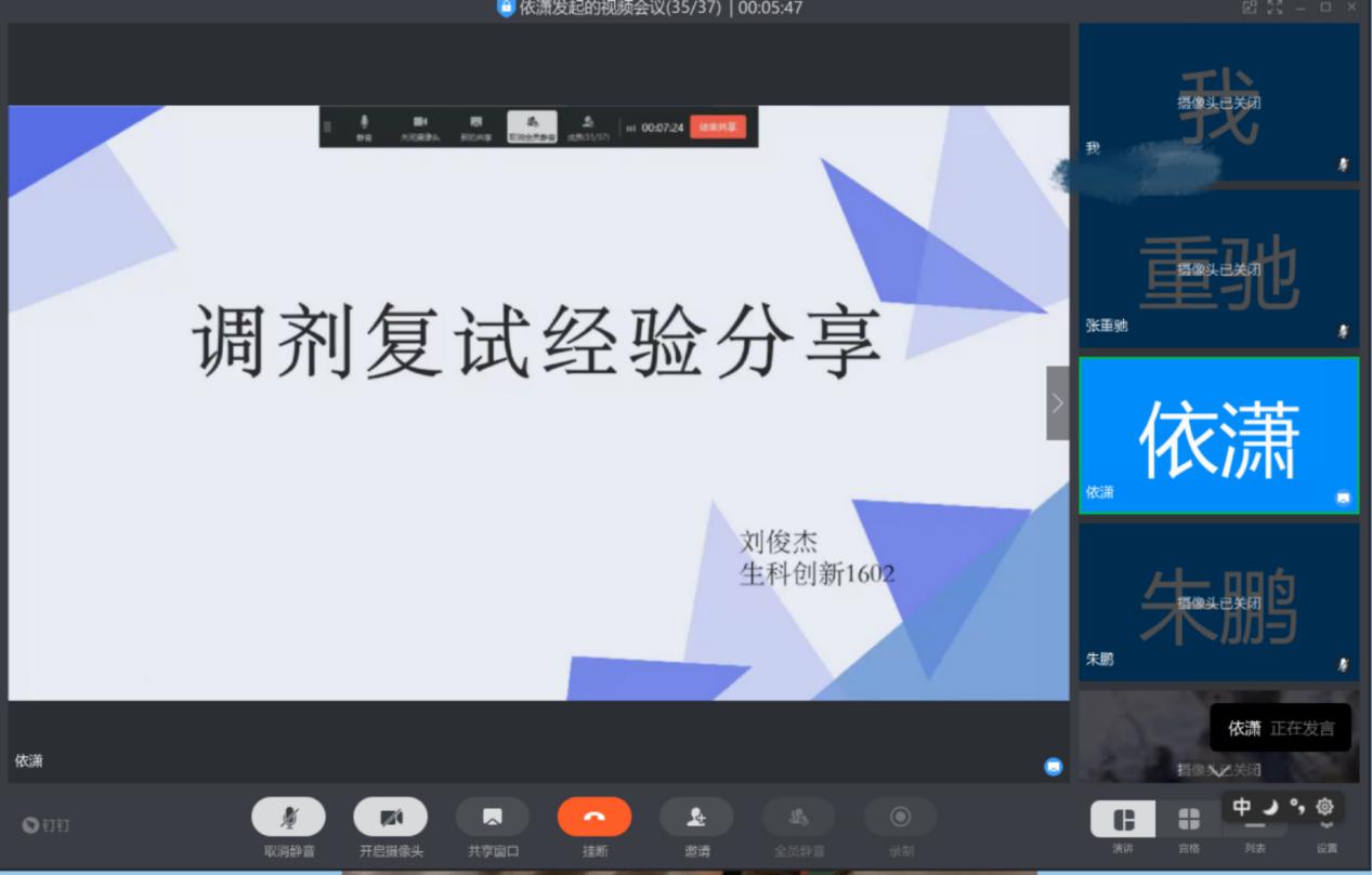 3月6日19时,生命科学学院通过钉钉线上会议举办考研复试与调剂线上交流会。本次交流会邀请到学院2019届毕业生刘俊杰和吕芳娇做经验分享。