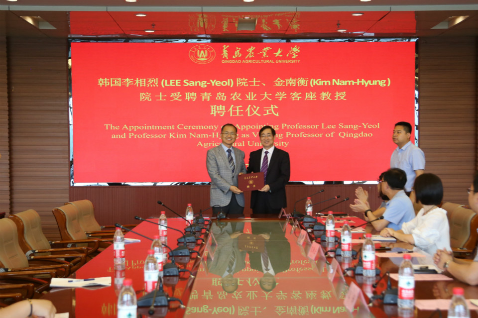 7月8日,我校举行聘任仪式,聘任韩国科学技术翰林院院士、庆尚大学李相烈教授,韩国科学技术翰林院院士、忠北大学金南衡院士为我校客座教授。校长宋希云出席聘任仪式并为两位院士颁发聘书,聘任仪式由生命科学学院党委书记孙世孟教授主持。