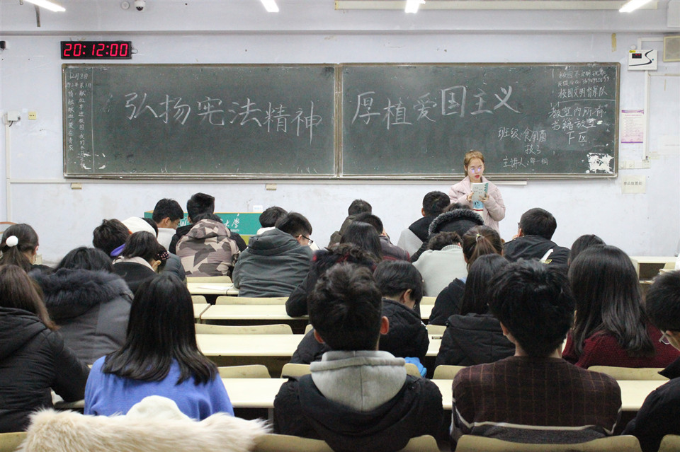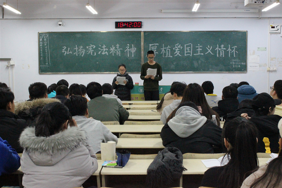 12月8日,我院举行 “学习宪法,遵从宪法”和“致敬一二九,共筑中国梦”主题团课。18、19级全体同学参加。