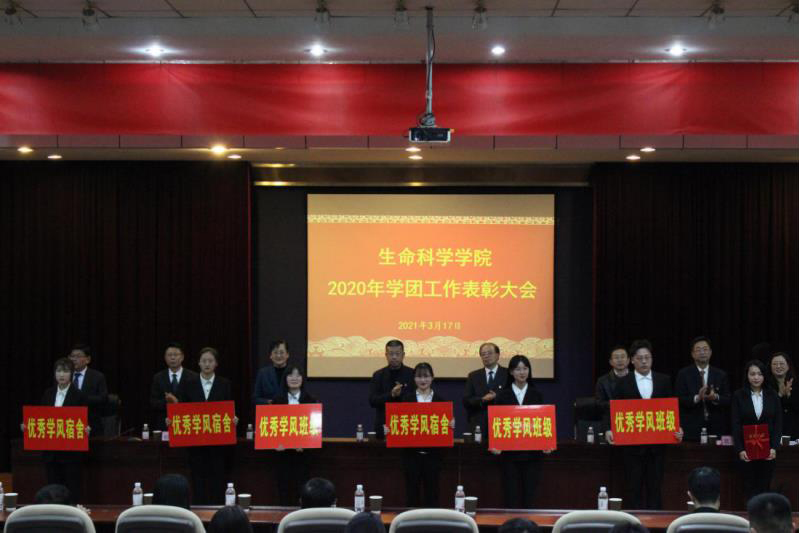 3月17日,生命科学学院在信息楼六楼报告厅召开2020年学团工作总结表彰大会。校学工处处长王清春,校团委副书记、创新创业学院副院长王光炬及学院党政领导出席此次会议。表彰大会由学院团委书记王敬主持,获奖教师和班主任代表、学工办和教学办老师及各年级学生代表参加大会。