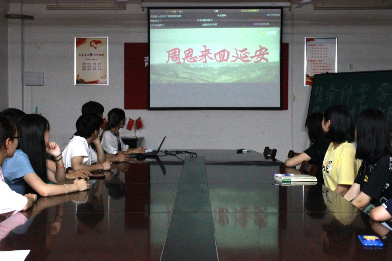 为提高党员、入党积极分子思想高度,重温共产党光辉历程,生命科学学院在6月25日在学院会议室组织学生党员、入党积极分子集体观看电影《周恩来回延安》。