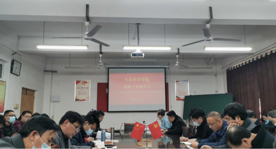 3月11日下午,生命科学学院组织全体教职工在生物楼C305会议室集中开展理论学习,认真学习贯彻习近平给全国涉农高校的书记校长和专家代表的回信精神,学院党政领导和全体教职工参加。