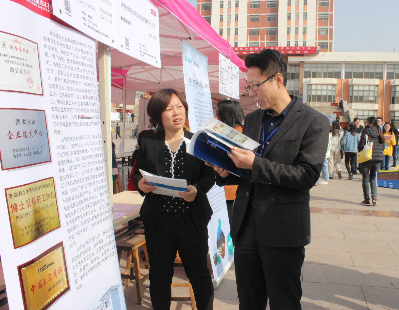3月31日,2018届校园招聘会于校内举行,青岛农业大学生命科学学院院长刘新、院党委副书记、副院长初文杰、院团委书记王敬走访招聘会现场,与相关企业负责人进行亲切交谈,及时了解各用人单位的招聘情况。