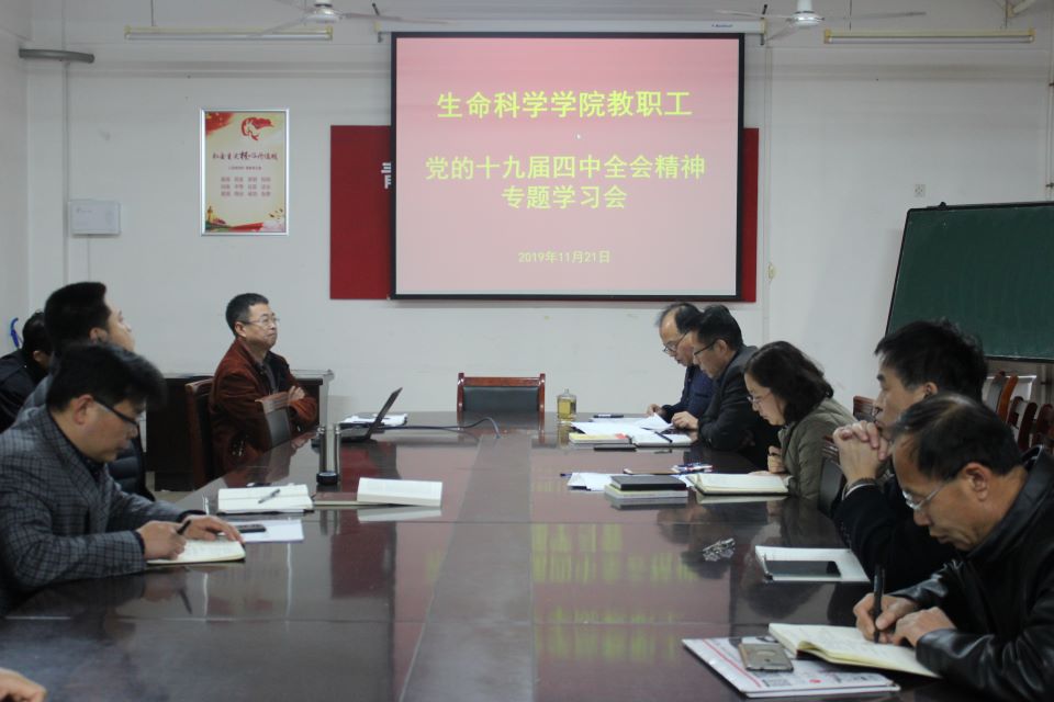 11月21日,我院在资料室召开党的十九届四中全会精神专题学习会议,党委书记孙世孟,党委副书记、副院长初文杰,副院长郭立忠、杨松、沈伟,团委书记王敬及全体教职工参加学习。