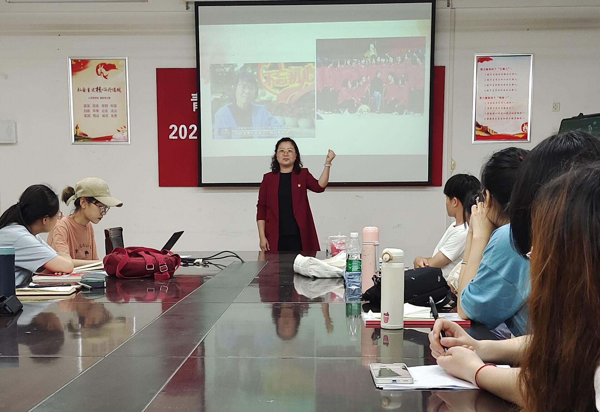 为丰富学习方式,推动党史学习教育走实走深,6月10日,生命科学学院第五党支部书记王敬以“燃灯校长张桂梅—用生命托起大山的希望”为题,在学院会议室为学生党员上专题党课。