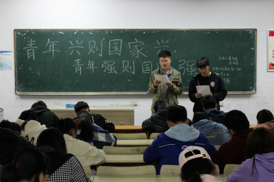 为迎接五四运动一百周年的到来,我院于4月28日在教学区开展“青年兴则国家兴,青年强则国家强”主题团课活动。17、18级全体学生参加。