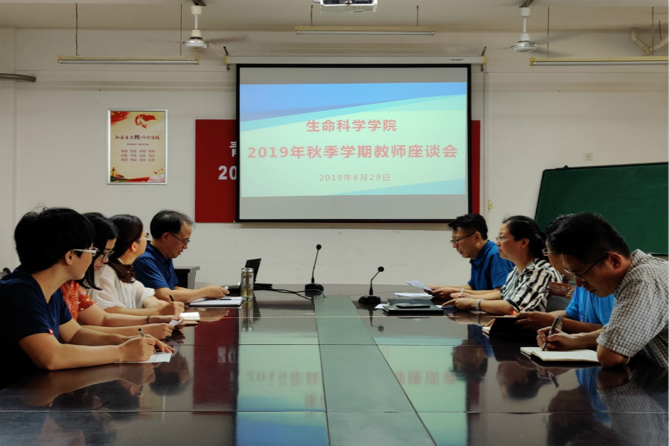 8月29日,我院在生物楼召开2019年秋季学期教师座谈会,参加会议的有院党委书记孙世孟,党委副书记、副院长初文杰,团委书记王敬及教工党支部书记及各系教师代表。