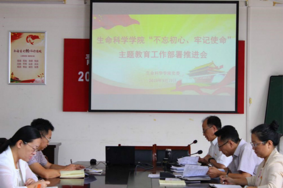 为扎实开展好“不忘初心、牢记使命”主题教育, 9月19日,我院在资料室举行“不忘初心,牢记使命”主题教育工作部署推进会。传达学校主题教育专题会议精神,部署学院主题教育活动工作开展。学院全体教师党员和学生党员参加会议。会议由学院党委副书记、副院长初文杰主持。