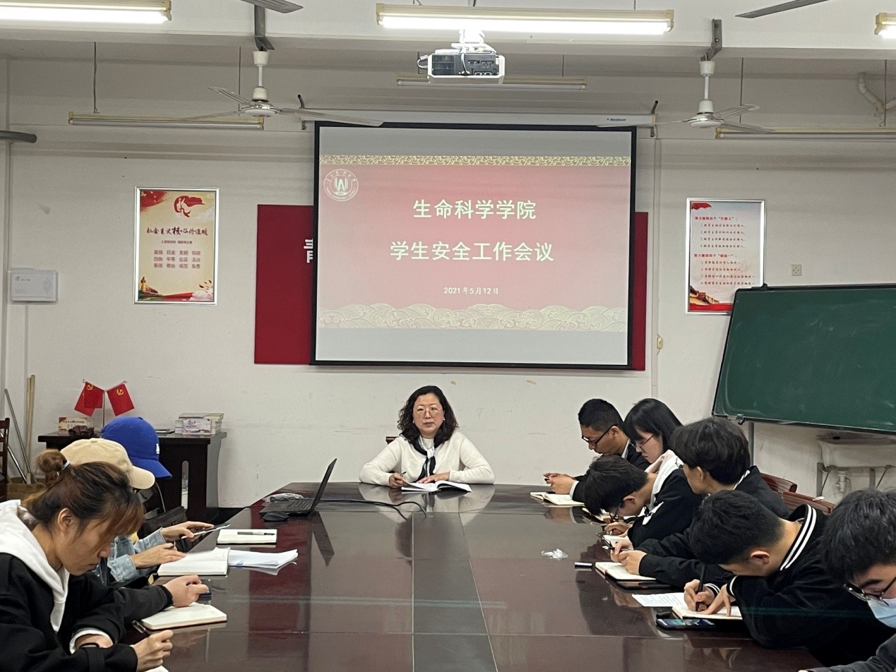 5月12日,生命科学学院在生物楼C305召开学生安全工作会议,学院院团委书记王敬主持会议,辅导员王春晓、董益帆及学院全体学生干部参加。