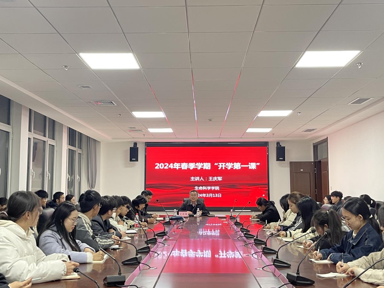 3月13日,校党委副书记王庆军在平度校区大学生创业中心会议室为生命科学学院学生讲授2024年春季学期“开学第一课”。学院党委书记孙景福主持,学院党委副书记、副院长刘妍玲,团委书记王洋,辅导员及2023级学生干部参加。