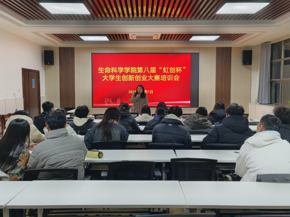 为深化创新创业教育,激发学生科创热情,助力参赛团队备赛,12月5日,生命科学学院在生物楼C312举办了第八届“虹创杯”大学生创新大赛培训会。会议由学院团委书记王洋主持,全体参赛学生参加。