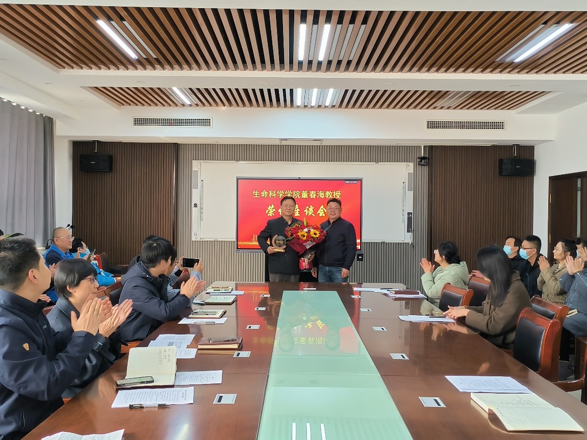 3月21日,生命科学学院在生物楼C305举行董春海教授荣休仪式暨“2024全国两会精神”专题学习会议。会议由学院党委副书记、副院长刘妍玲主持,学院全体教职工参加。