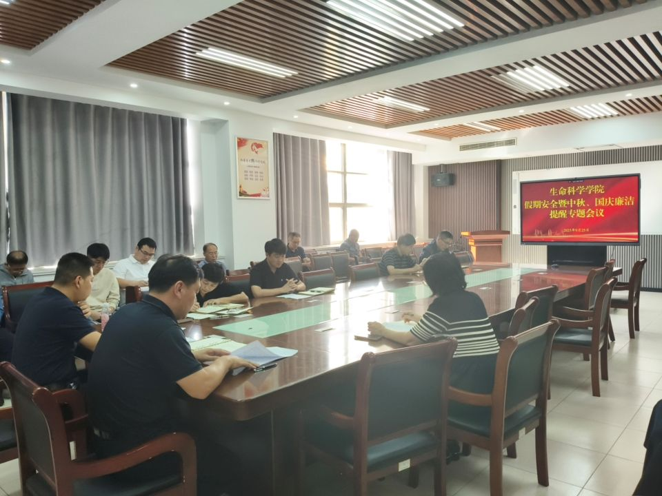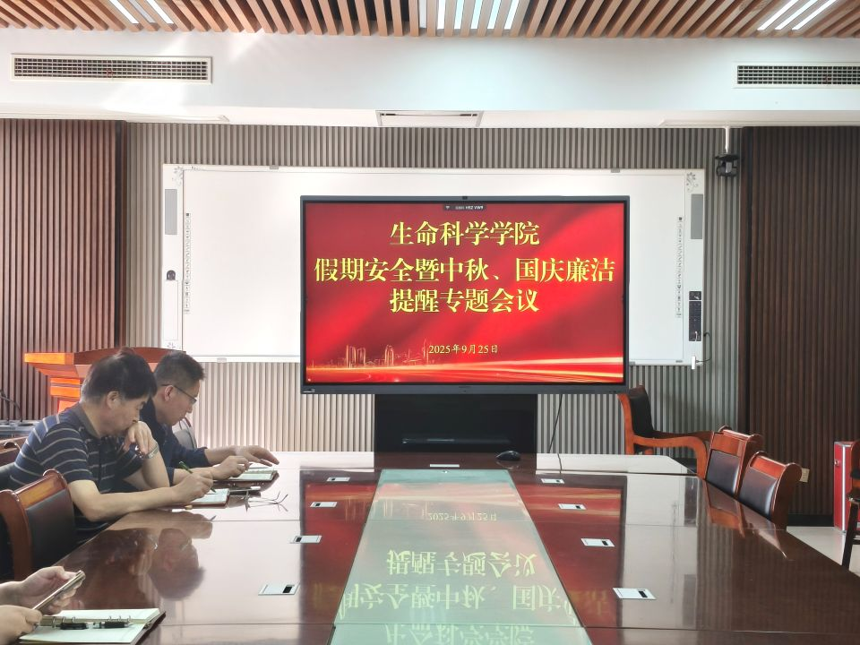 为保障假期校园安全稳定,加强师德师风建设与廉洁自律工作,9月25日,生命科学学院在生物楼C305召开假期安全暨中秋国庆廉洁提醒专题会议。会议由学院党委书记孙景福主持,全体教职工参加。
