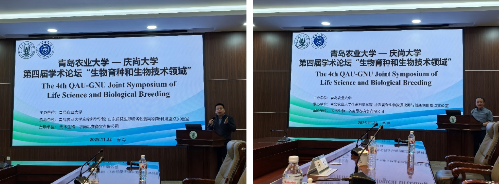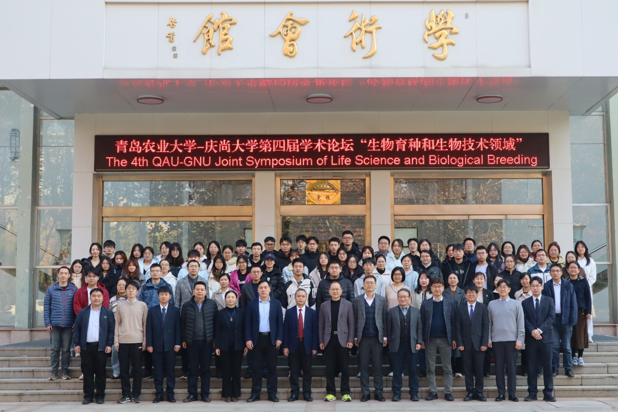 11月22日,青岛农业大学生命学学院与韩国庆尚大学自然科学学院第四届学术论坛在青岛农业大学城阳校区学术会馆举行。本届论坛聚焦“生物育种和生物技术领域”,由青岛农业大学生命科学学院与山东省微生物资源挖掘与创新利用重点实验室共同承办。校党委委员、副校长郭尚敬、庆尚大学Sang Yeol Lee 院士、生物技术研究所Woo Sik Chung所长以及庆尚大学相关专家教授、学校国际交流处、人事处、生命科学学院相关负责人及100多位师生参加论坛。